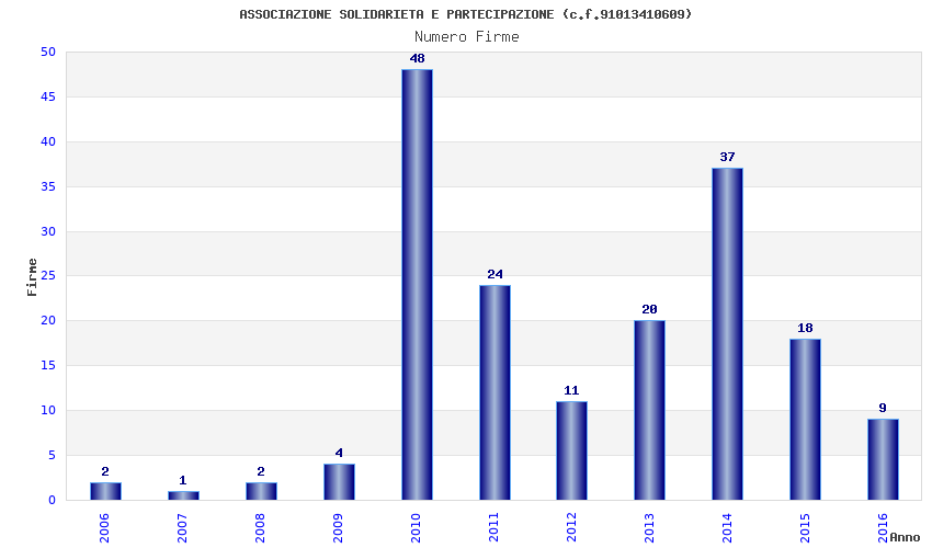 | Anno | Firme | Importi | Media | Naz. | Reg. | Prov. | Comu. |