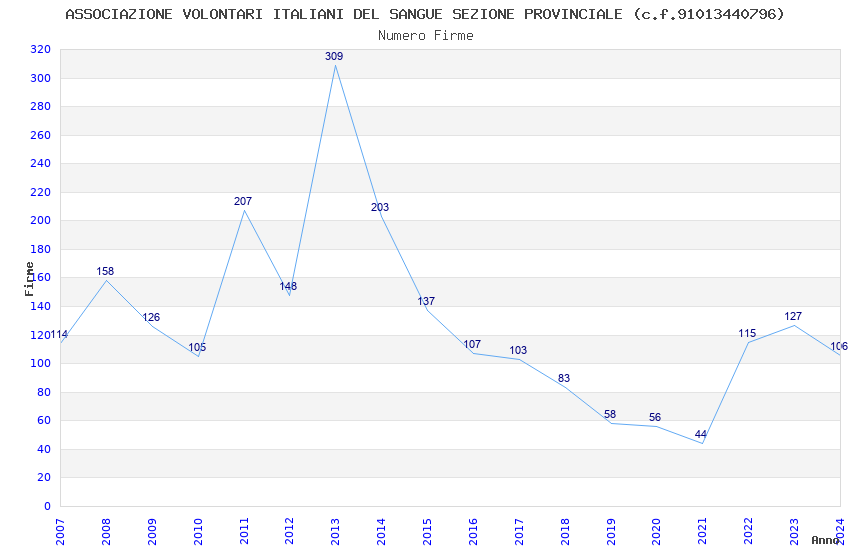 | 2024 | 106 | 2.350,31 | 22,17 | 21.223 | 525 | 47 | 22 |