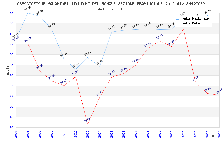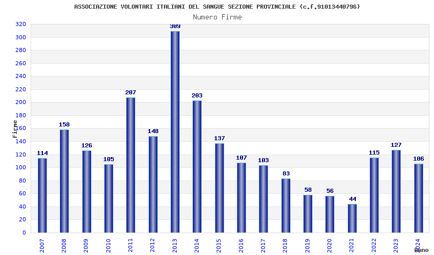 | Anno | Firme | Importi | Media | Naz. | Reg. | Prov. | Comu. |