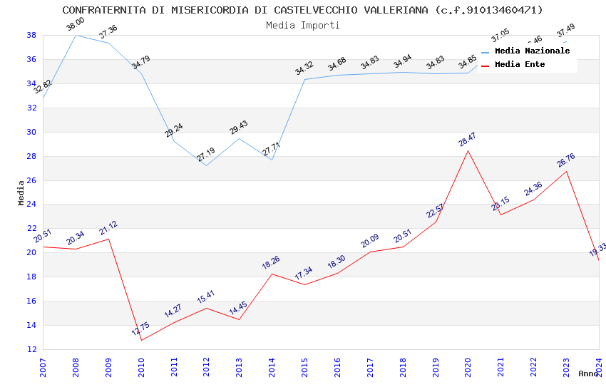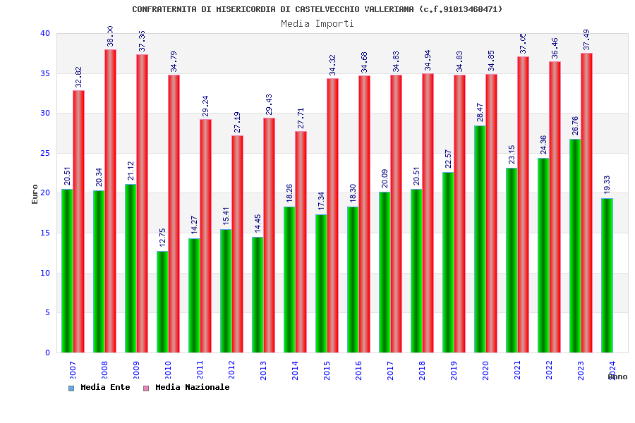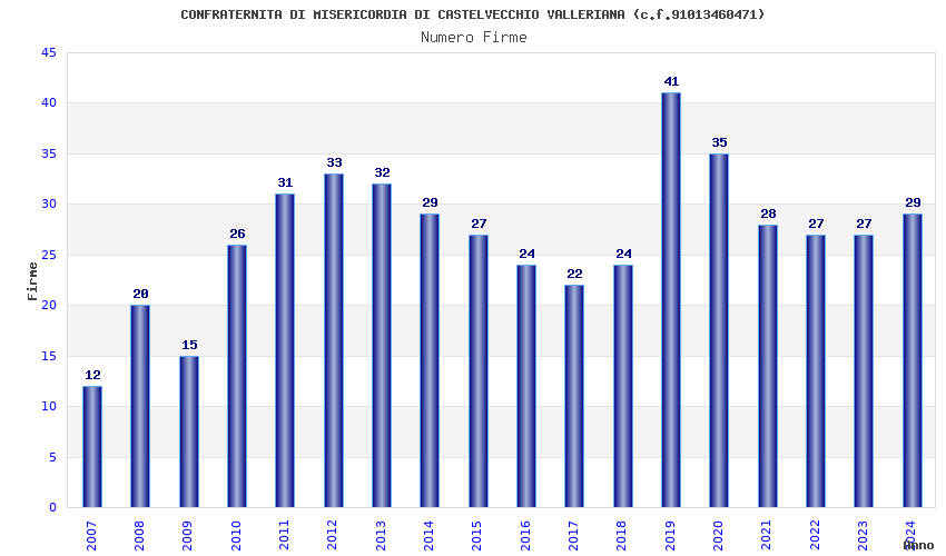 | Anno | Firme | Importi | Media | Naz. | Reg. | Prov. | Comu. |