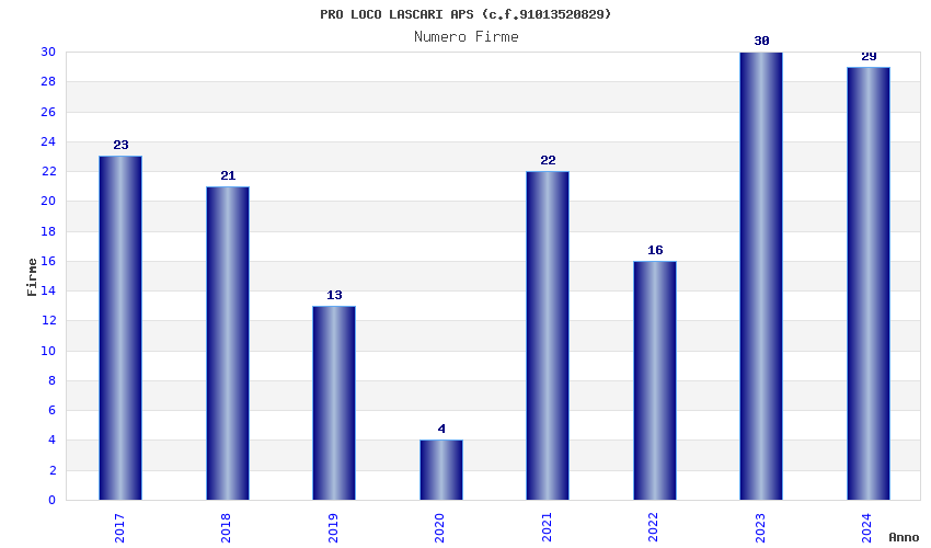 | Anno | Firme | Importi | Media | Naz. | Reg. | Prov. | Comu. |