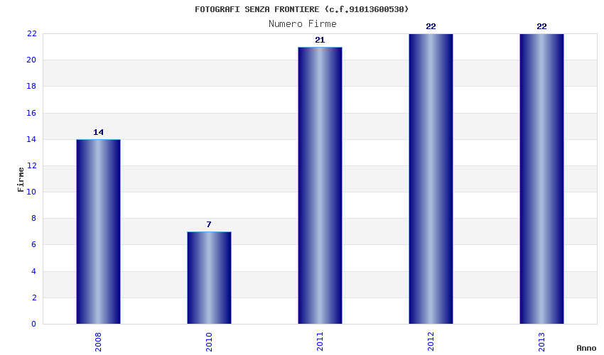 | Anno | Firme | Importi | Media | Naz. | Reg. | Prov. | Comu. |