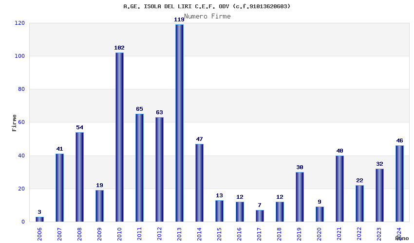 | 2024 | 46 | 821,33 | 17,86 | 41.601 | 3.840 | 221 | 15 |