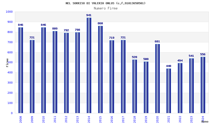 | Anno | Firme | Importi | Media | Naz. | Reg. | Prov. | Comu. |