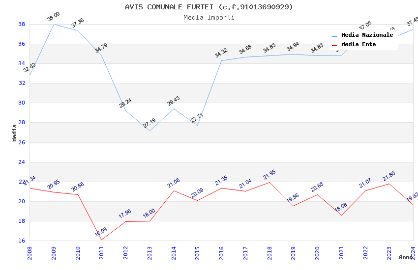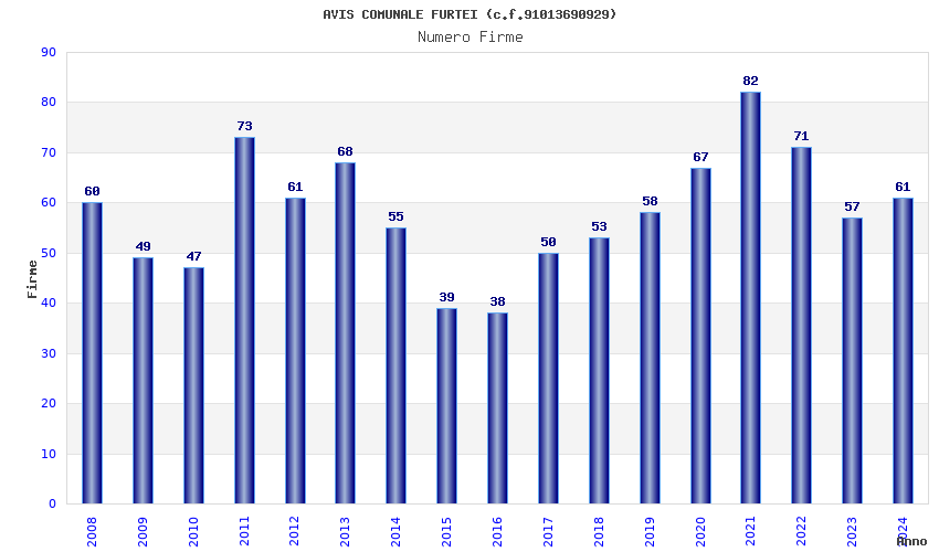 | Anno | Firme | Importi | Media | Naz. | Reg. | Prov. | Comu. |
