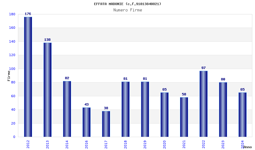 | Anno | Firme | Importi | Media | Naz. | Reg. | Prov. | Comu. |