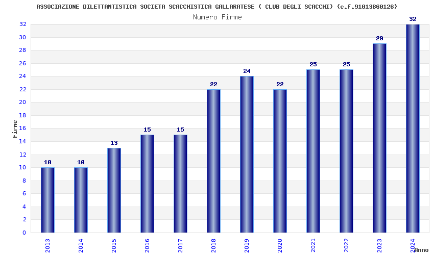 | Anno | Firme | Importi | Media | Naz. | Reg. | Prov. | Comu. |