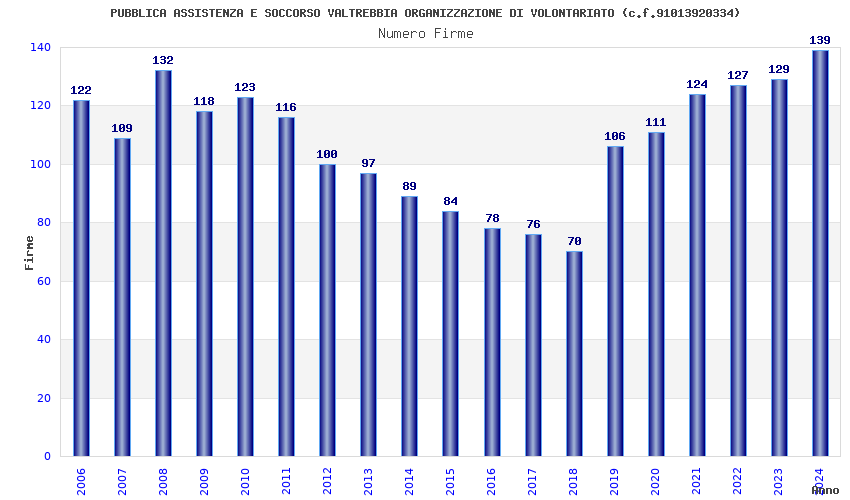 | Anno | Firme | Importi | Media | Naz. | Reg. | Prov. | Comu. |
