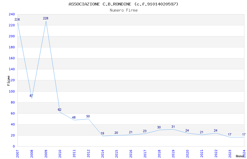 | 2017 | 23 | 560,33 | 24,36 | 42.534 | 3.658 | 244 | 18 |