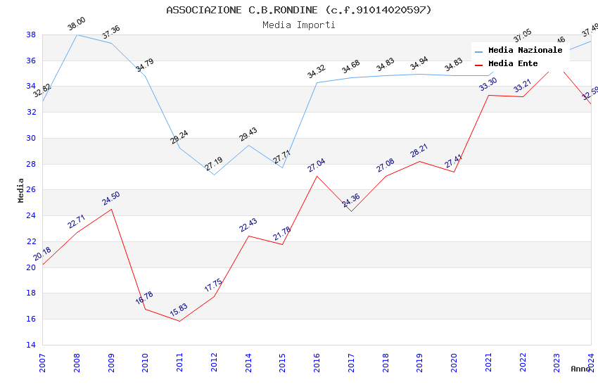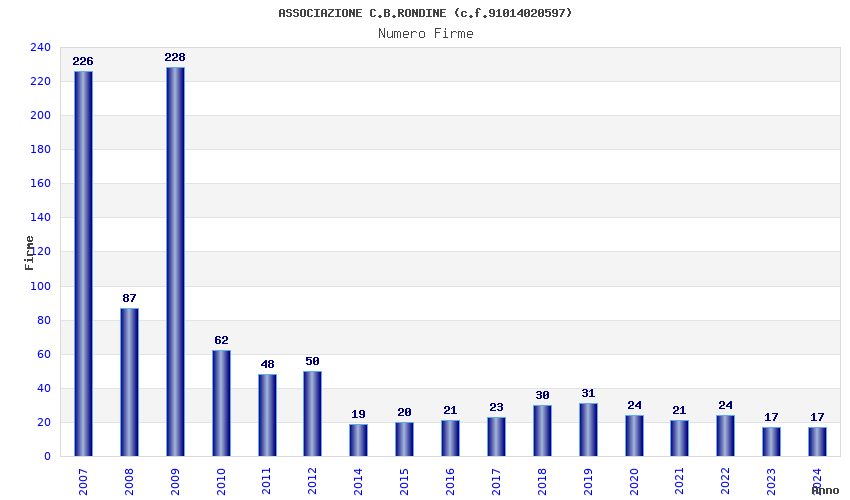| Anno | Firme | Importi | Media | Naz. | Reg. | Prov. | Comu. |