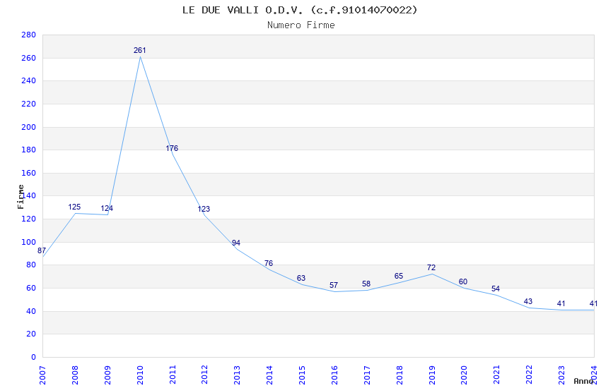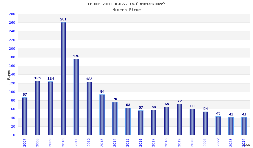 Anno Firme Importi Media Naz. Reg. Prov. Comu.