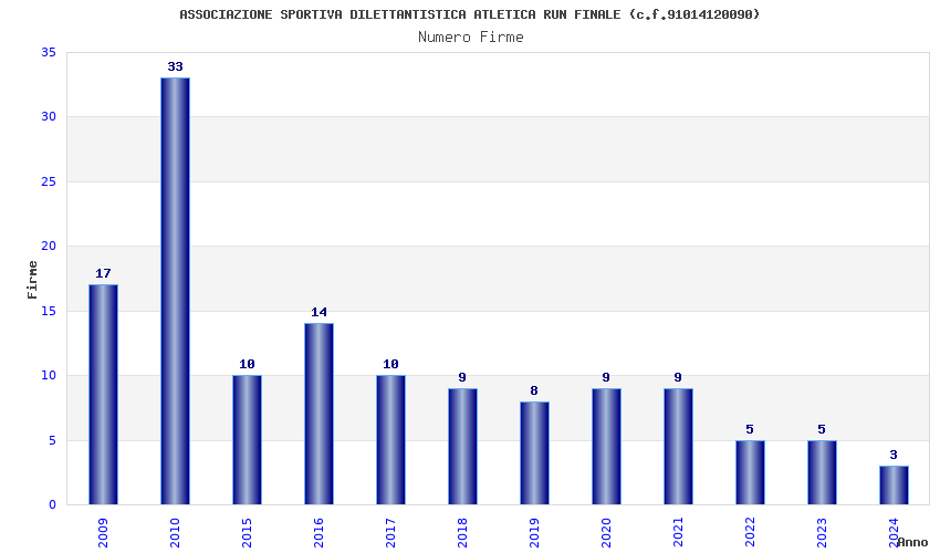 | 2010 | 33 | 5.036,71 | 152,63 | 8.238 | 252 | 35 | 2 |