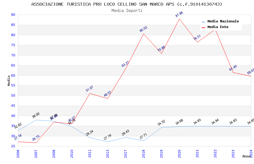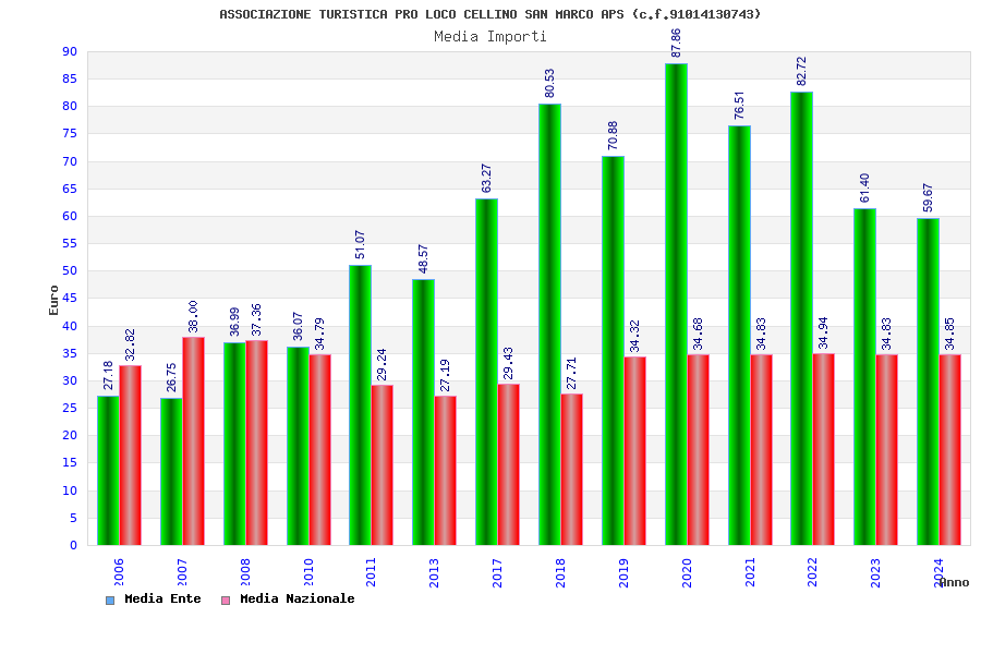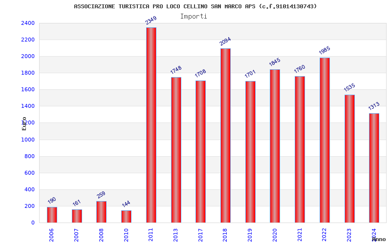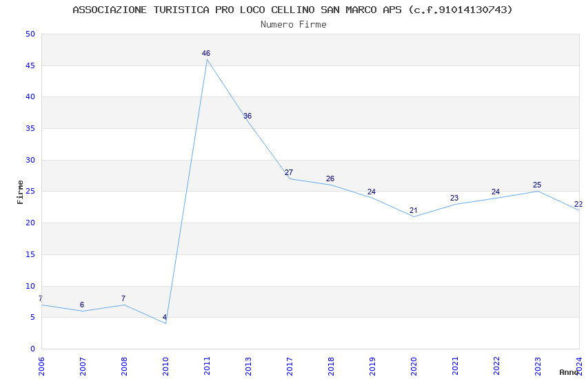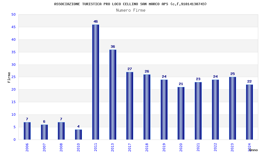 | Anno | Firme | Importi | Media | Naz. | Reg. | Prov. | Comu. |