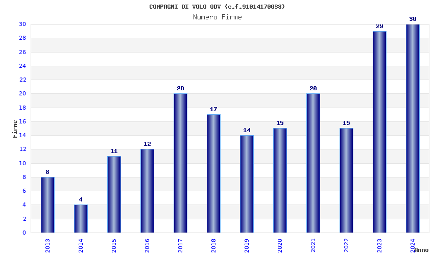| Anno | Firme | Importi | Media | Naz. | Reg. | Prov. | Comu. |