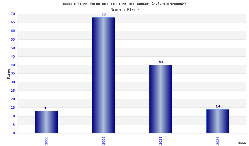 | Anno | Firme | Importi | Media | Naz. | Reg. | Prov. | Comu. |
