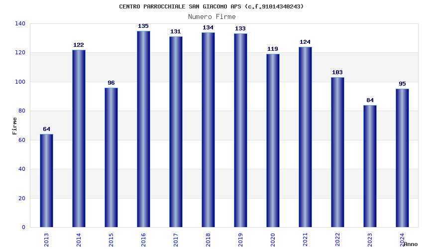 | Anno | Firme | Importi | Media | Naz. | Reg. | Prov. | Comu. |