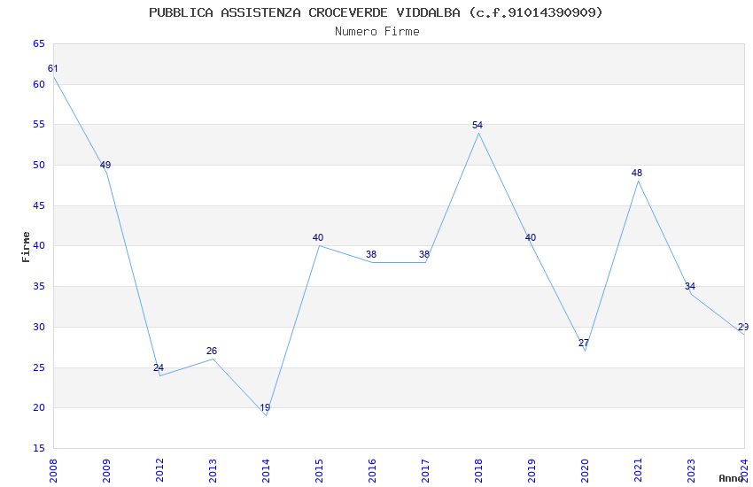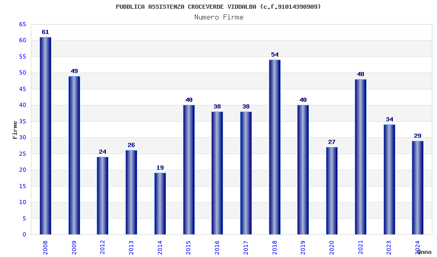 | Anno | Firme | Importi | Media | Naz. | Reg. | Prov. | Comu. |