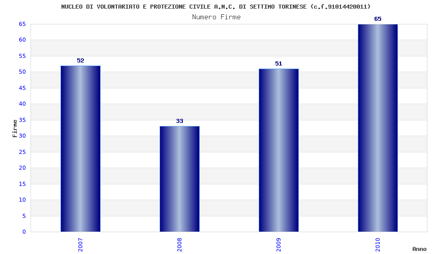 | Anno | Firme | Importi | Media | Naz. | Reg. | Prov. | Comu. |