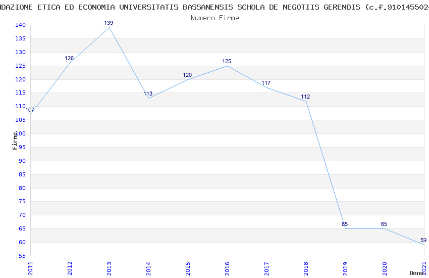| Anno | Firme | Importi | Media | Naz. | Reg. | Prov. | Comu. |