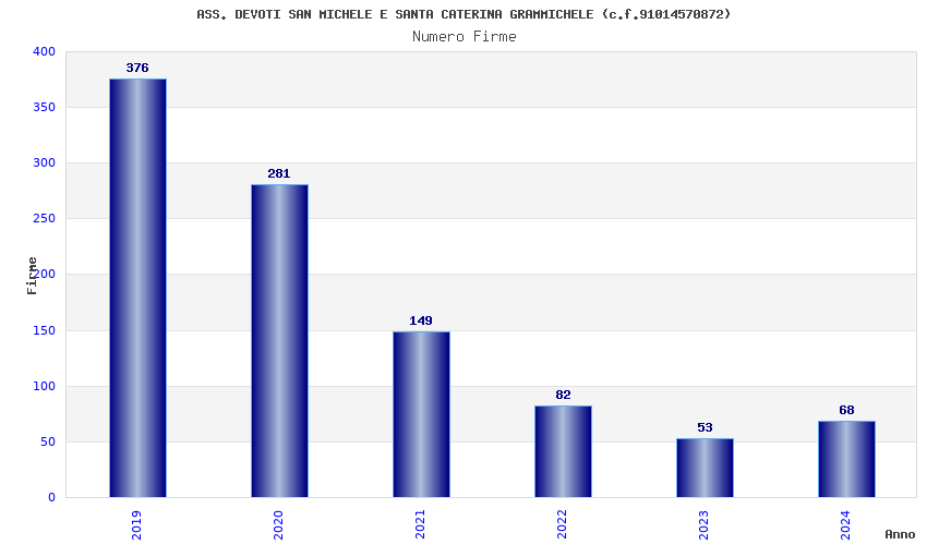 | Anno | Firme | Importi | Media | Naz. | Reg. | Prov. | Comu. |
