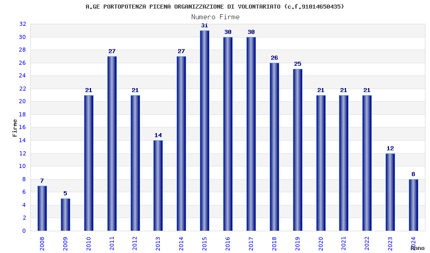 | Anno | Firme | Importi | Media | Naz. | Reg. | Prov. | Comu. |