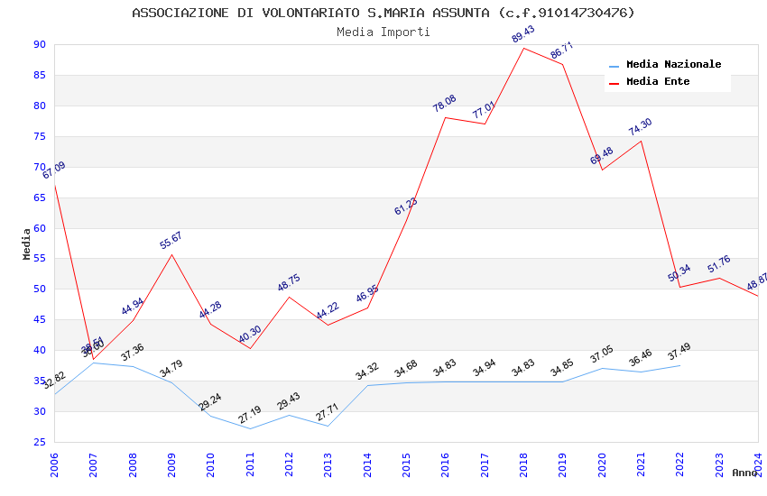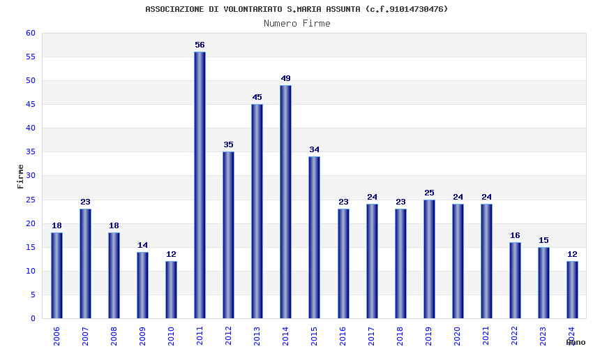| Anno | Firme | Importi | Media | Naz. | Reg. | Prov. | Comu. |