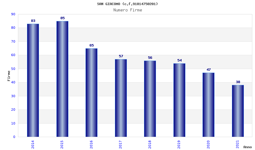 | Anno | Firme | Importi | Media | Naz. | Reg. | Prov. | Comu. |