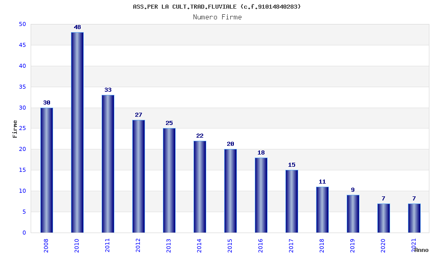 | Anno | Firme | Importi | Media | Naz. | Reg. | Prov. | Comu. |