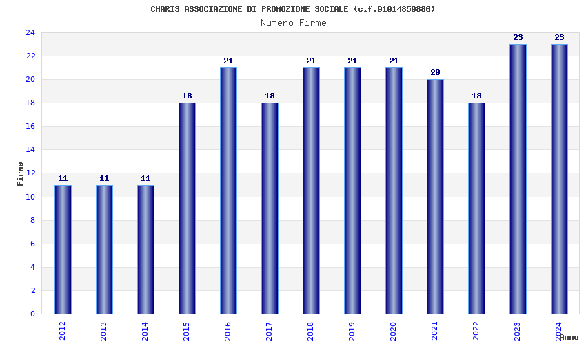 | Anno | Firme | Importi | Media | Naz. | Reg. | Prov. | Comu. |