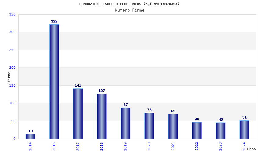 | Anno | Firme | Importi | Media | Naz. | Reg. | Prov. | Comu. |