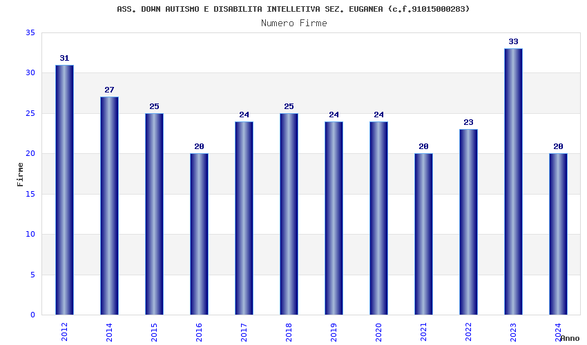 | 2023 | 33 | 738,64 | 22,38 | 41.668 | 3.947 | 829 | 19 |