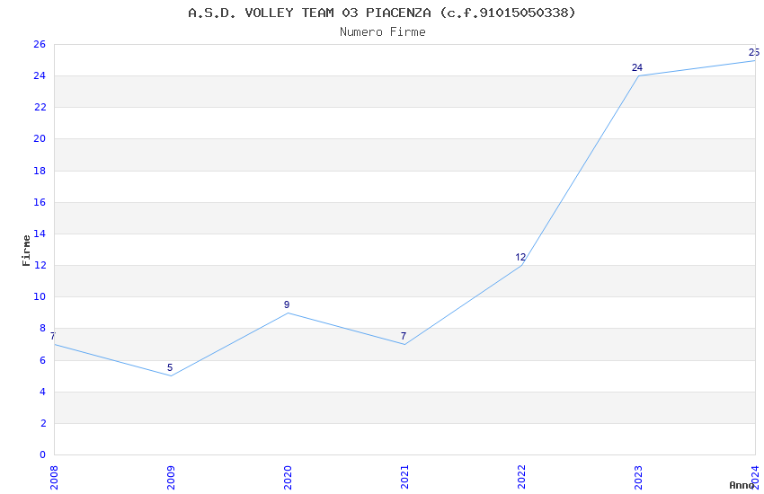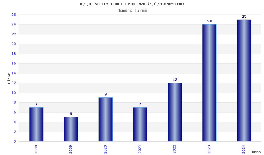 | Anno | Firme | Importi | Media | Naz. | Reg. | Prov. | Comu. |