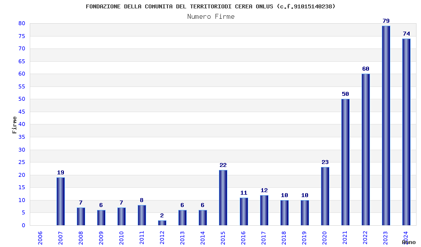 | Anno | Firme | Importi | Media | Naz. | Reg. | Prov. | Comu. |