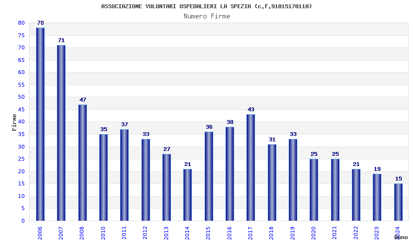 | Anno | Firme | Importi | Media | Naz. | Reg. | Prov. | Comu. |