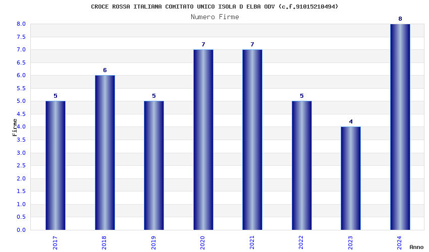| Anno | Firme | Importi | Media | Naz. | Reg. | Prov. | Comu. |