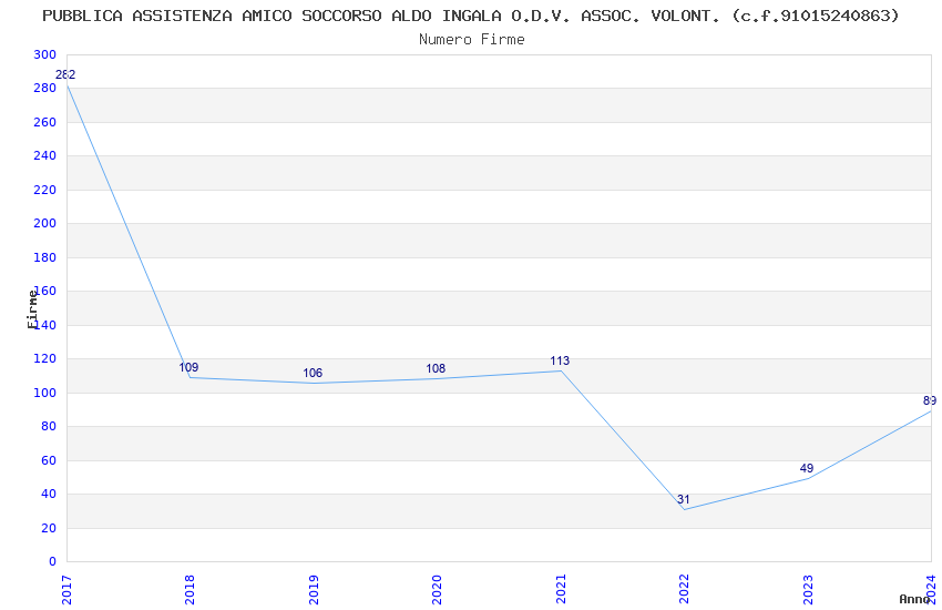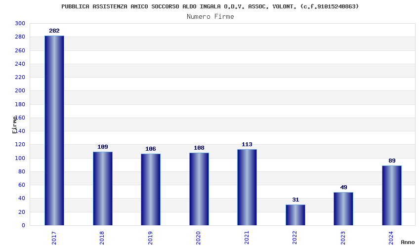 | Anno | Firme | Importi | Media | Naz. | Reg. | Prov. | Comu. |