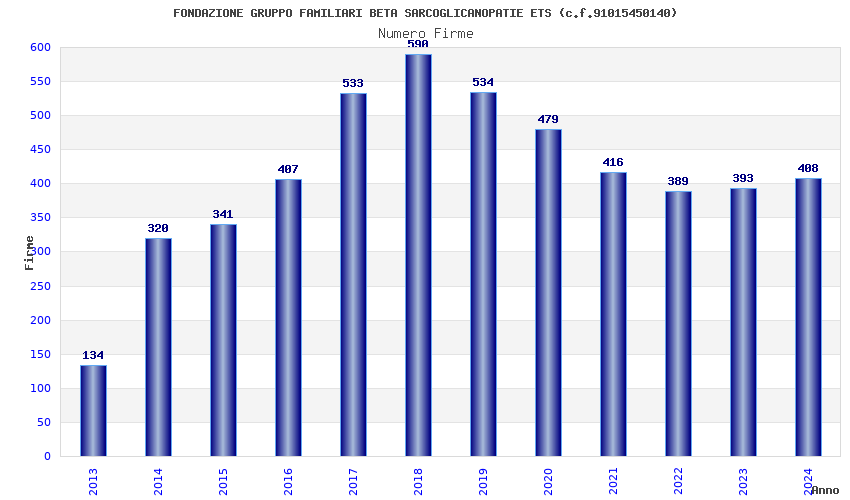 | Anno | Firme | Importi | Media | Naz. | Reg. | Prov. | Comu. |