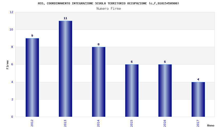 | Anno | Firme | Importi | Media | Naz. | Reg. | Prov. | Comu. |