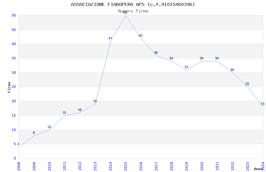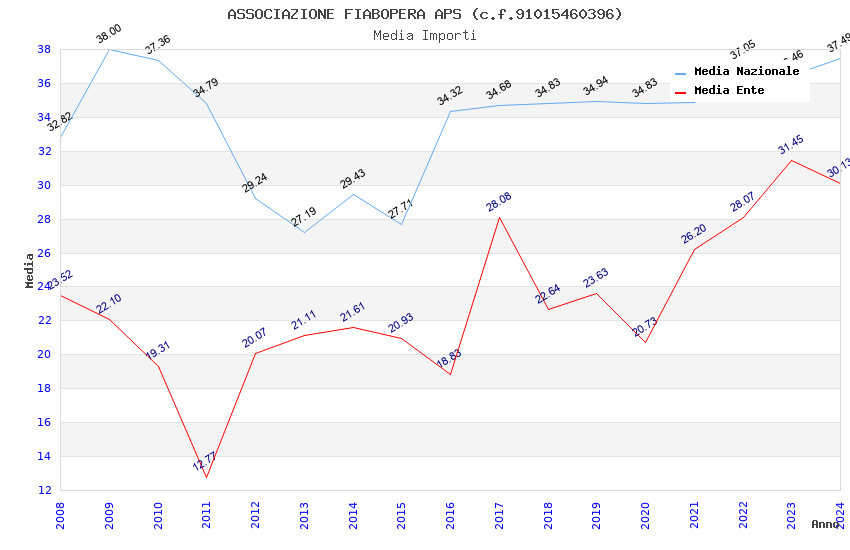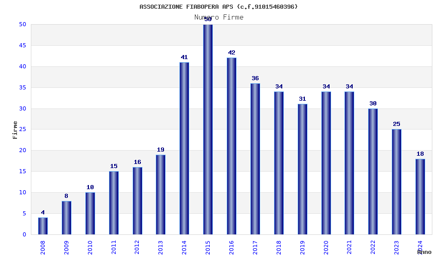 | Anno | Firme | Importi | Media | Naz. | Reg. | Prov. | Comu. |
