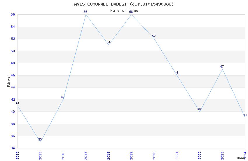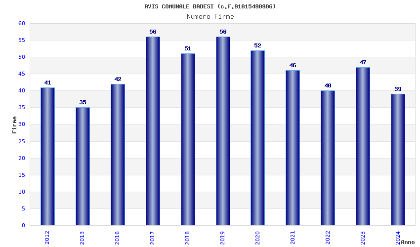 Anno Firme Importi Media Naz. Reg. Prov. Comu.