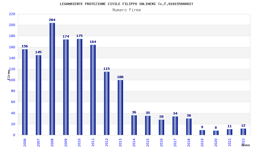 | Anno | Firme | Importi | Media | Naz. | Reg. | Prov. | Comu. |