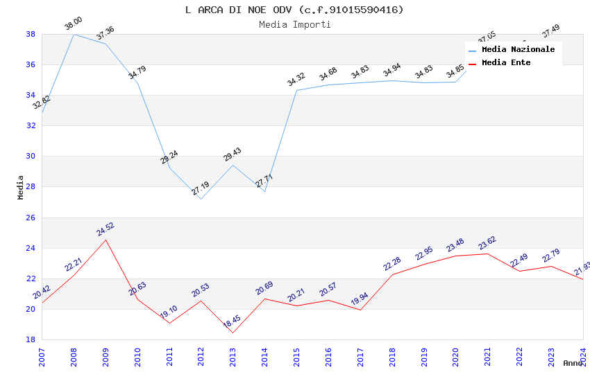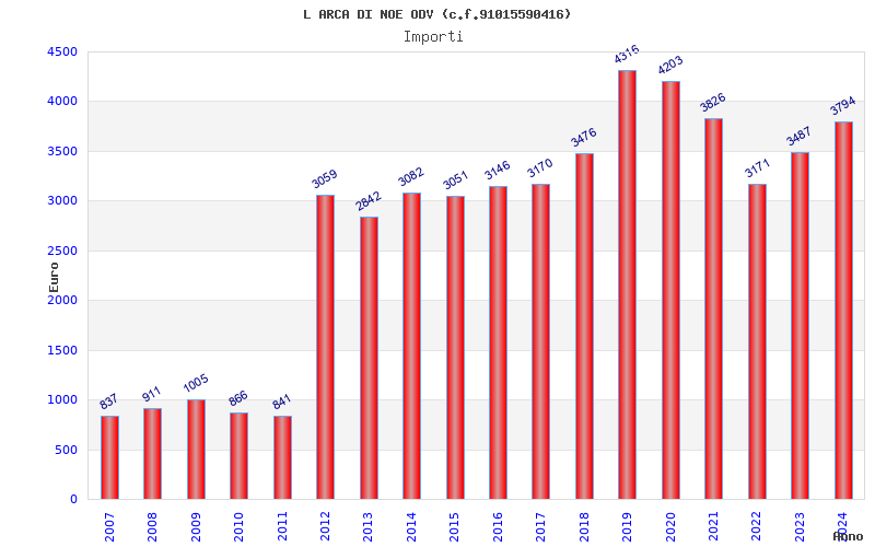 | Anno | Firme | Importi | Media | Naz. | Reg. | Prov. | Comu. |