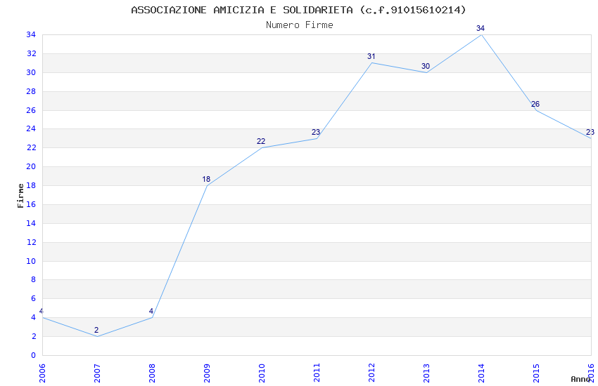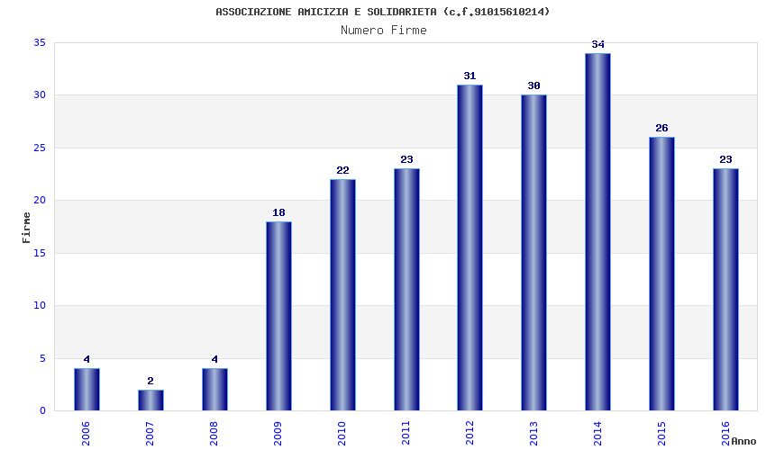 | Anno | Firme | Importi | Media | Naz. | Reg. | Prov. | Comu. |