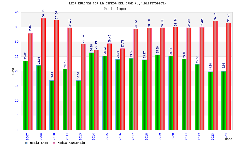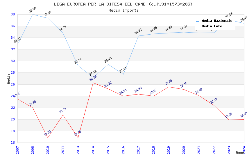 | Anno | Firme | Importi | Media | Naz. | Reg. | Prov. | Comu. |