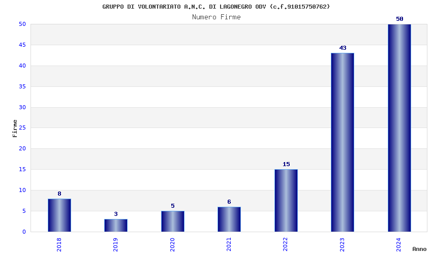 | Anno | Firme | Importi | Media | Naz. | Reg. | Prov. | Comu. |