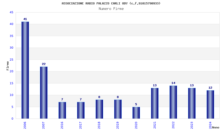 Anno Firme Importi Media Naz. Reg. Prov. Comu.