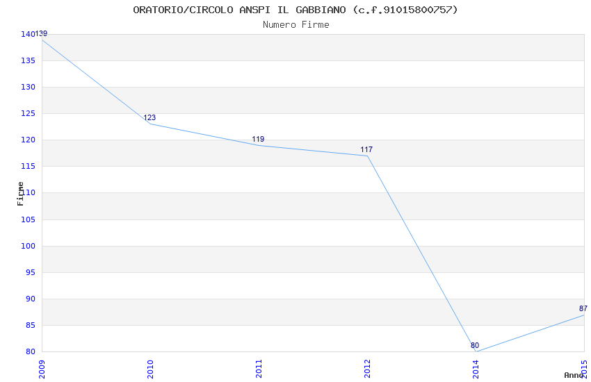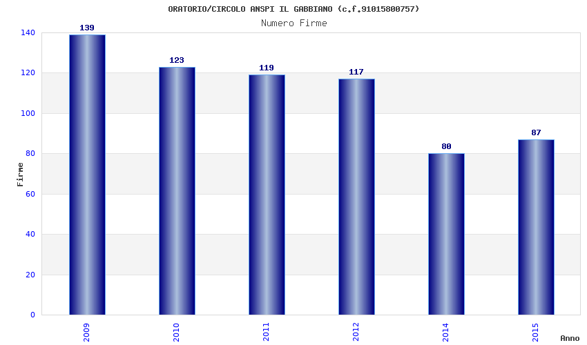 | Anno | Firme | Importi | Media | Naz. | Reg. | Prov. | Comu. |