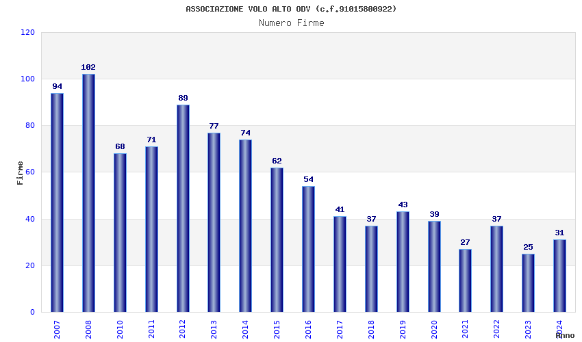 | 2007 | 94 | 2.372,44 | 25,24 | 11.924 | 242 | 44 | 2 |