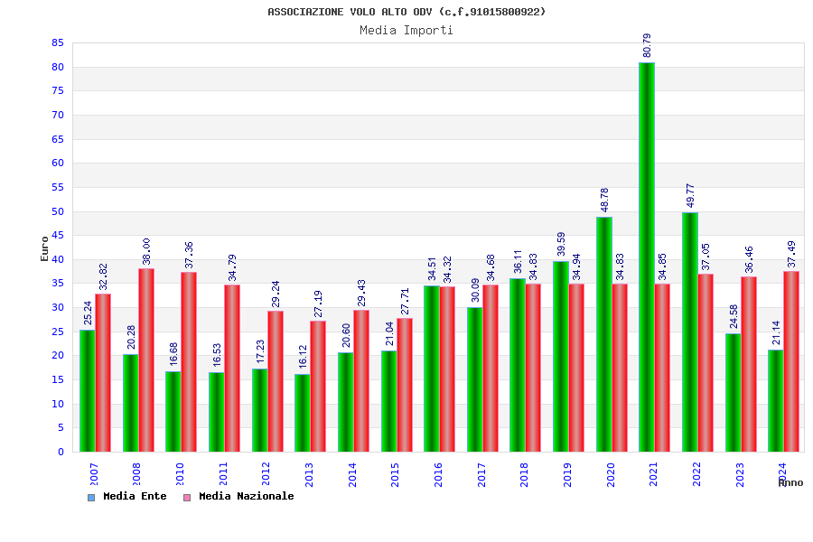 | Anno | Firme | Importi | Media | Naz. | Reg. | Prov. | Comu. |