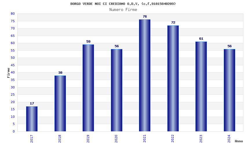 | Anno | Firme | Importi | Media | Naz. | Reg. | Prov. | Comu. |